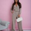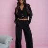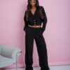 This stylish co-ord set is designed for women who appreciate comfort with a modern edge. The cropped top features a flattering V-neckline and decorative buttons that enhance the silhouette with a refined touch. The wide-leg trousers offer a relaxed fit with practical pockets, ensuring all-day comfort and ease of movement. Perfect for both everyday wear and casual outings, this set creates a cohesive and effortlessly chic look.