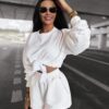 Choose comfort and effortless style! The LAZO women’s white set combines elegance with everyday ease. The oversized sweatshirt made from soft, breathable fabric and the high-waisted shorts. Ideal for a walk, a day in the city, or relaxing outdoors. The minimalist design and flattering fit highlight your silhouette while keeping you comfortable all day long